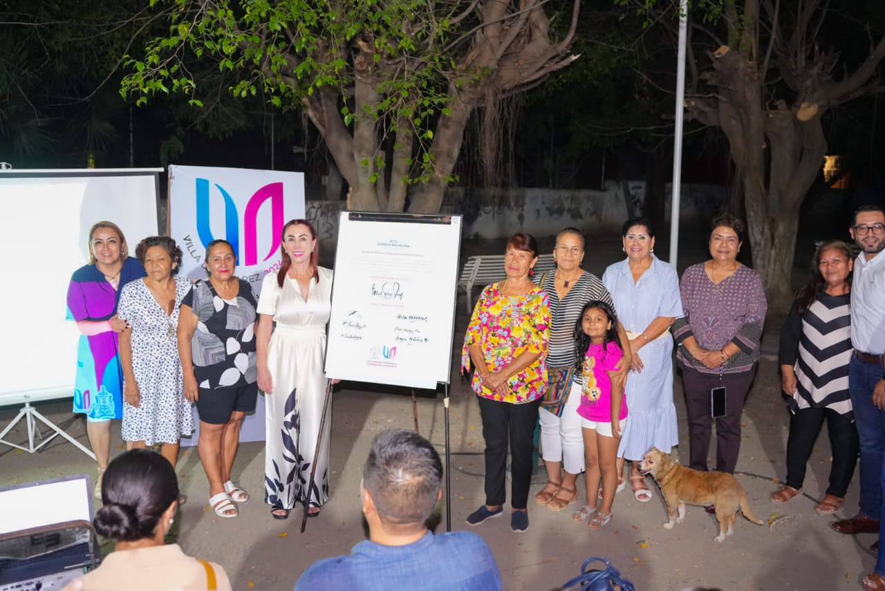Entrega Tey Gutiérrez obra de alumbrado público en el jardín de la Juan José Ríos I
