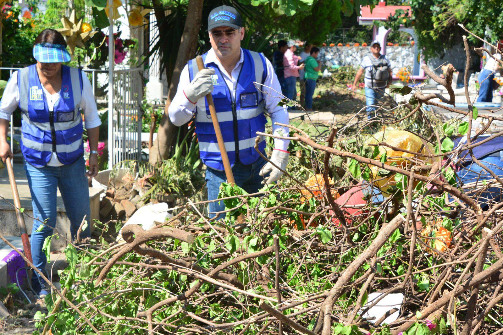 Riult Rivera trabaja de tiempo completo para mantener limpio y en orden el Panteón Municipal este Día de Muertos