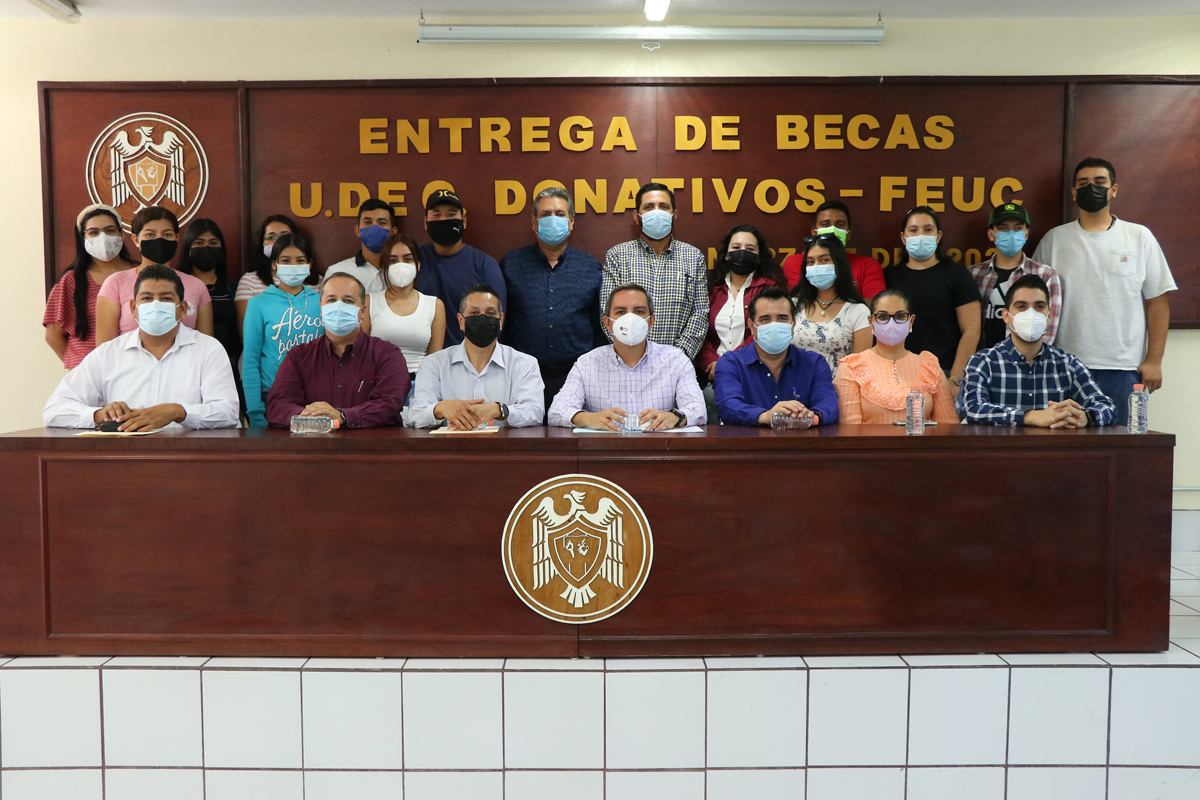 Este lunes, trece alumnos y alumnas de la Facultad de Ciencias Biológica y Agropecuarias (FCBA) del campus Tecomán, recibieron de manos del rector, Dr. Christian Jorge Torres Ortiz Zermeño, una beca para pagar su inscripción con recursos aportados por las empresas Grupo Imperial y Coirtech, gestionados por la Federación de Egresados de la Universidad de Colima (FEUC).