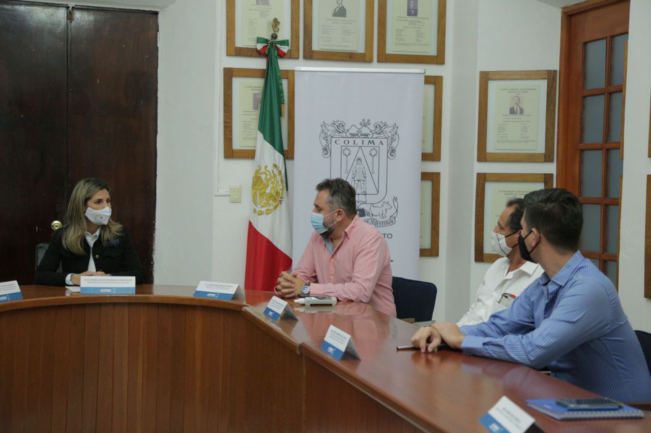 La presidenta municipal, Margarita Moreno, realizó la firma de un convenio de colaboración con la delegación Colima de la Cámara Mexicana de la Industria de la Construcción.