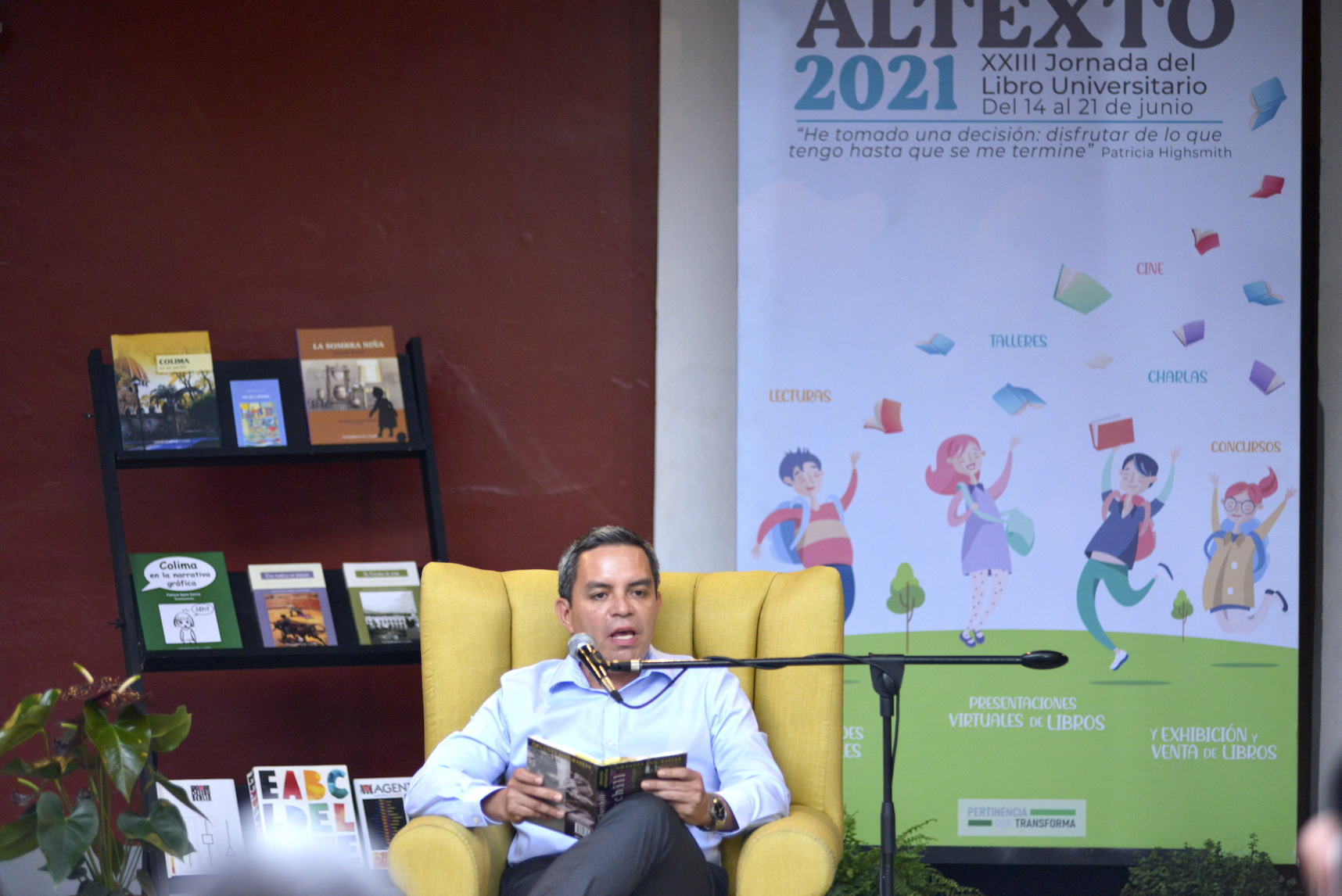 A lo largo de Altexto 2021, dijo, se realizaron 50 actividades (conferencias, conversatorios con autores, talleres, lecturas de poemas y cuentos, además de la venta de libros), muchas de ellas presenciales: en el museo “Fernando del Paso”, el foro “Pablo Silva”, el Teatro Universitario, en la explanada de Contabilidad del campus central y bajo la sombra de algunos árboles. Otras más fueron virtuales o en la modalidad híbrida o mixta.