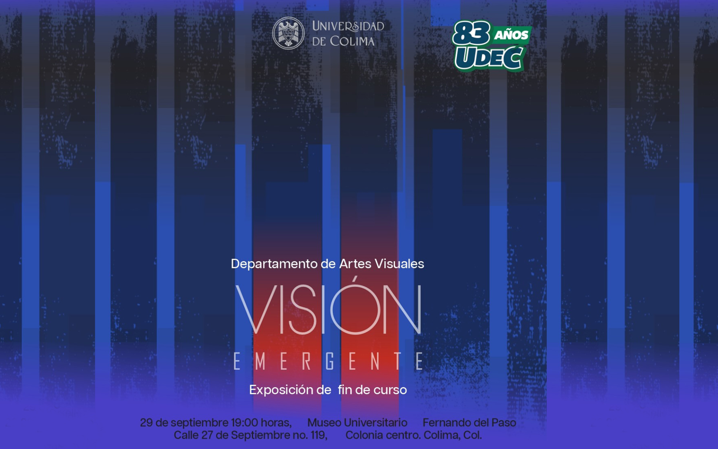 Este viernes 29 de septiembre, a las 19:00 horas, se abrirá al público la exposición colectiva “Visión Emergente”, en el Museo Universitario Fernando del Paso. Estas obras son proyectos de fin de curso que la comunidad estudiantil del Departamento de Artes Visuales de la Universidad de Colima realiza durante un año.