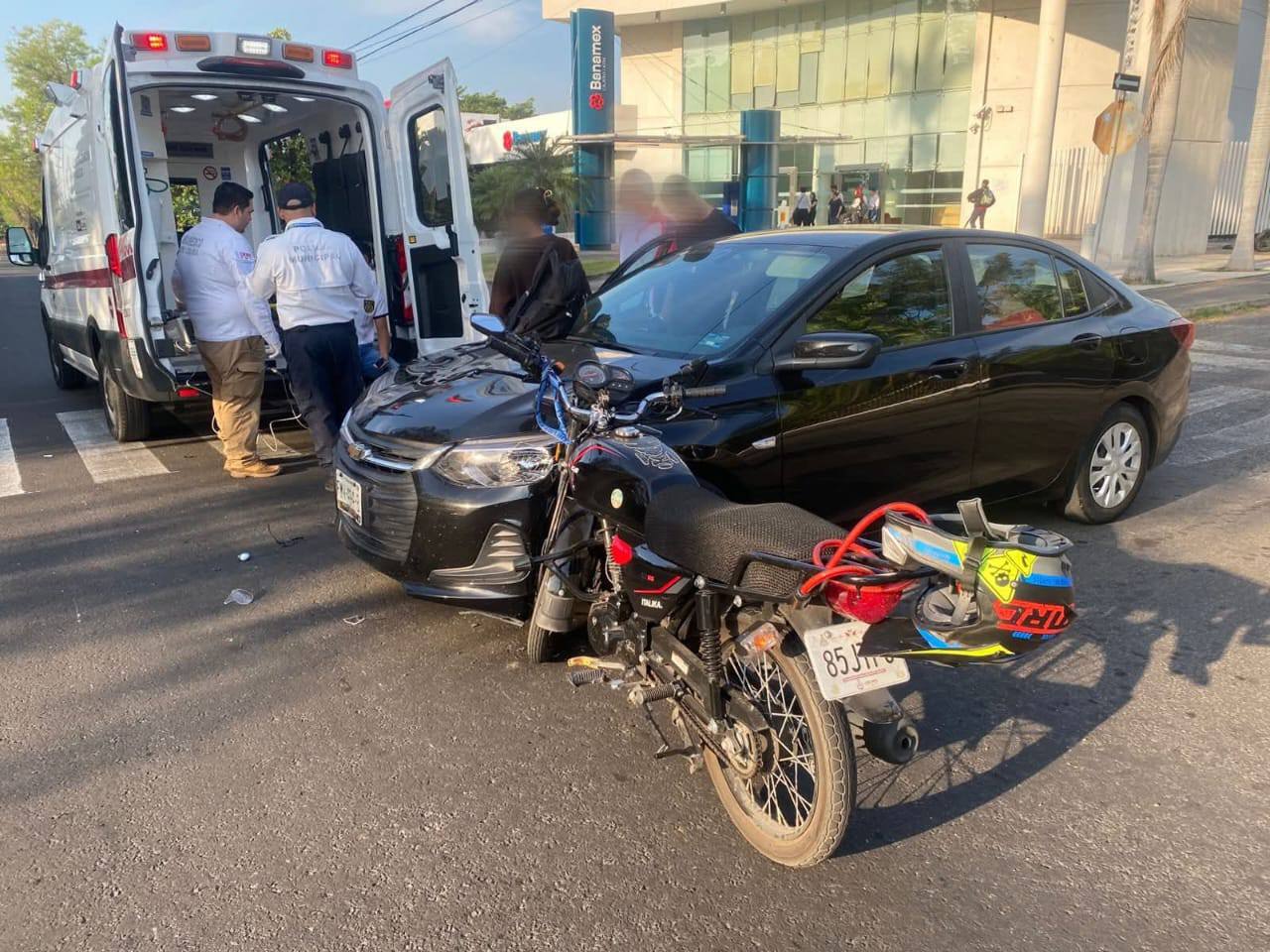 El reporte al número de emergencias señalaba que una motocicleta había colisionado contra un vehículo particular y que una persona se encontraba sobre la vialidad, consciente pero con lesiones visibles. De inmediato acudió una ambulancia del Centro Regulador de Urgencias Médicas (CRUM) para su atención.