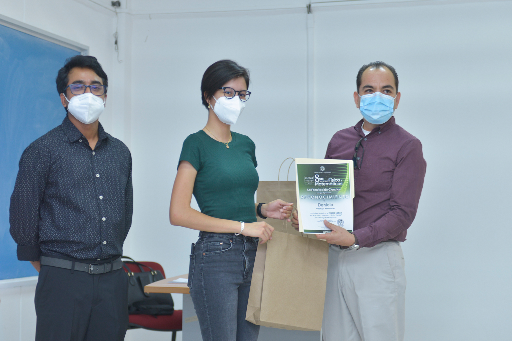 Al ganador del primer lugar se le otorgó una laptop ASUS Thin&Lighat de 15.6 pulgadas; al segundo, una Tableta Samsung Galaxy S6 Lite de 10.4 pulgadas y 64GB de almacenamiento, mientras que al tercero una Tablet Samsung Galaxy Tab A8 de 64 GB de almacenamiento. Los y la ganadora obtuvieron además una colección de libros de Física y Matemáticas y una beca-colegiatura para cursar la licenciatura en Física o Matemáticas en la UdeC.
