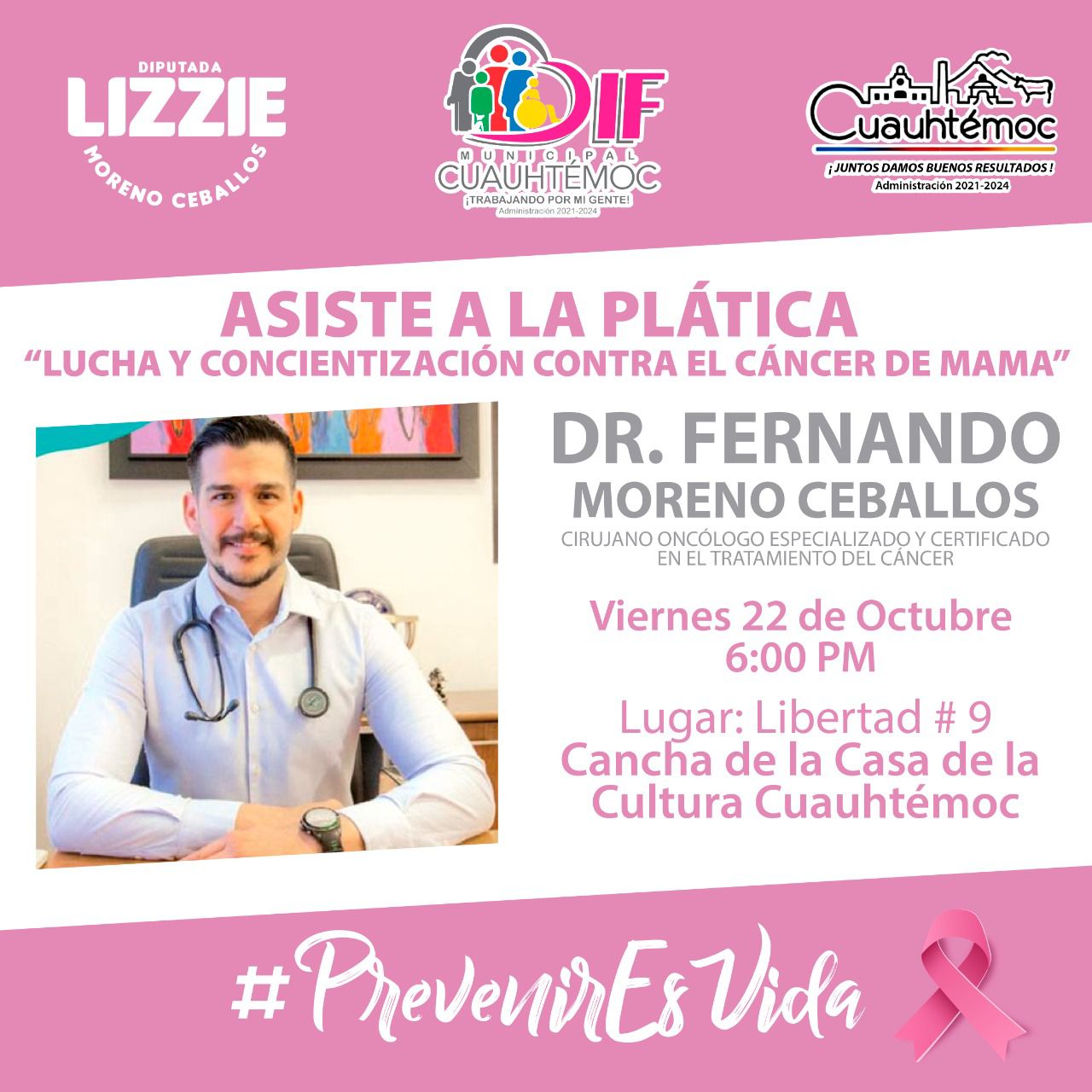 La presidenta de este sistema asistencia en el municipio, Nadia Anahí Mejía Martínez, dio a conocer que además de las anteriores, se impulsarán otras acciones en favor de las mujeres cuauhtemenses, iniciando con la charla denominada "Generalidades del Cáncer de mama", que impartirá el cirujano oncólogo especializado y certificado en el tratamiento de este padecimiento, Fernando Moreno Ceballos.