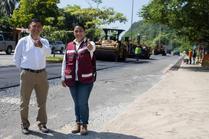 Griselda Martínez supervisa colocación del concreto hidráulico en Tapeixtles