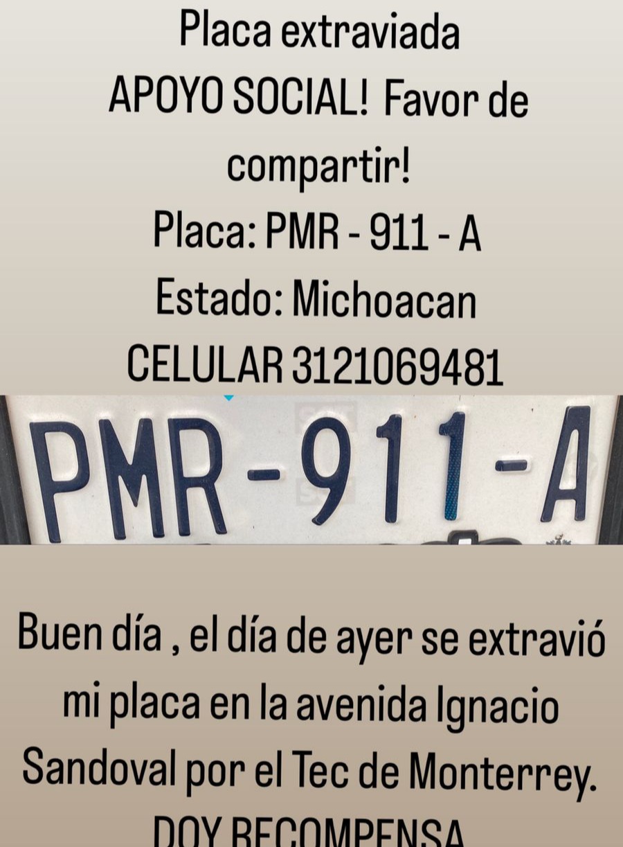 Piden apoyo para localizar placa de circulación vehicular extraviada en Colima