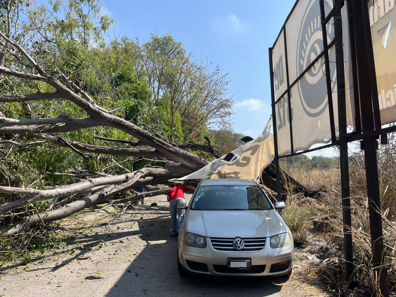 Retira personal del Ayuntamiento, árbol caído por quema de maleza en propiedad privada