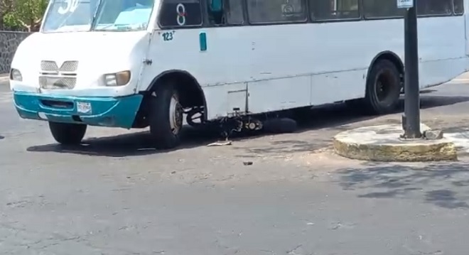 Autobús de pasajeros arrolla motociclista, en accidente registrado en la avenida 20 de noviembre en Colima