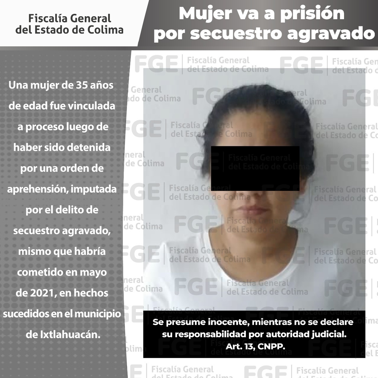 Mujer va a prisión por secuestro agravado