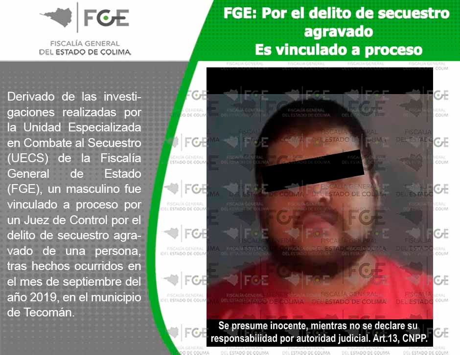 FGE: Por el delito de secuestro agravado Es vinculado a proceso