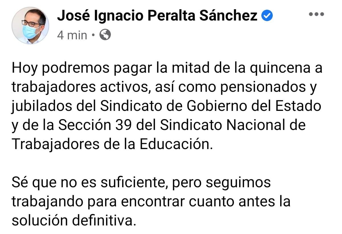 Anuncia gobernador de Colima, el pago de la mitad del sueldo de trabajadores del gobierno y maestros SNTE39, este jueves