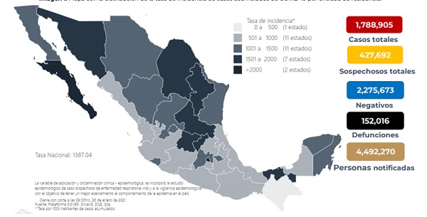Suma México 1 millón 778 mil 905 personas que han padecido COvid~19