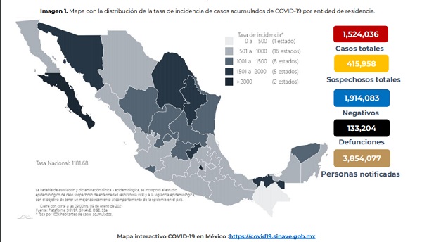 Se reportan 16 mil 105 casos nuevos de Covid~19 en las últimas 24 horas en México