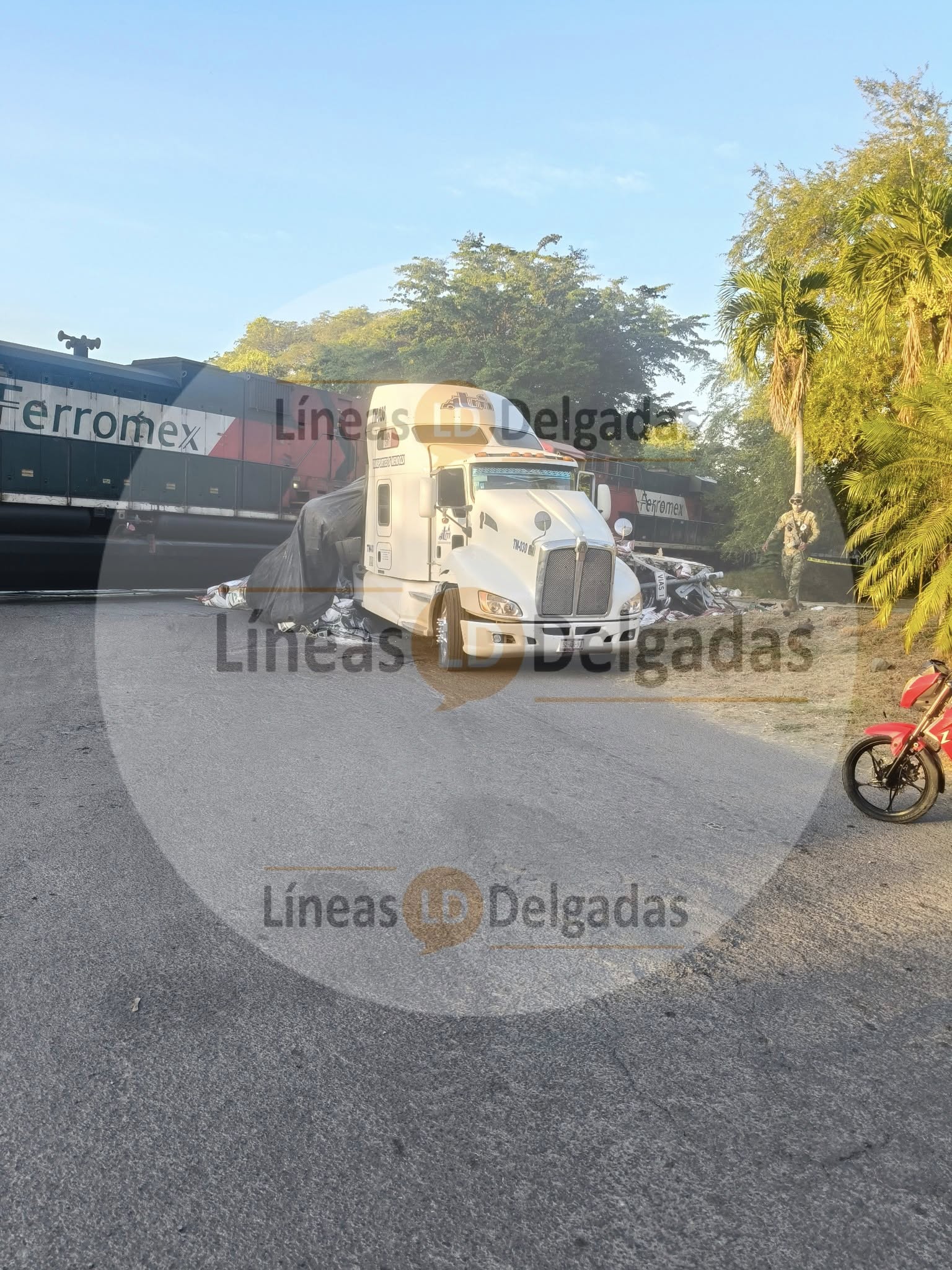 Tren arrolla tráiler en la entrada a la colonia Milenio; no se reportan lesionados