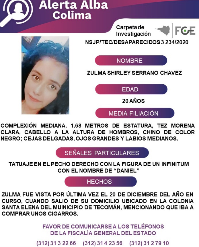 DESDE EL PASADO 20 DE DICIEMBRE, SE BUSCA A ZULMA EN TECOMAN