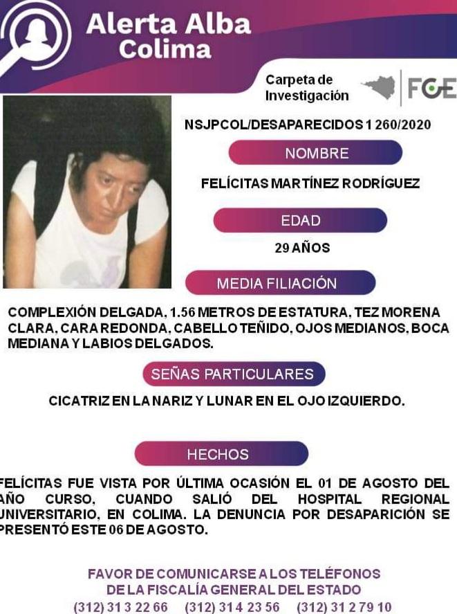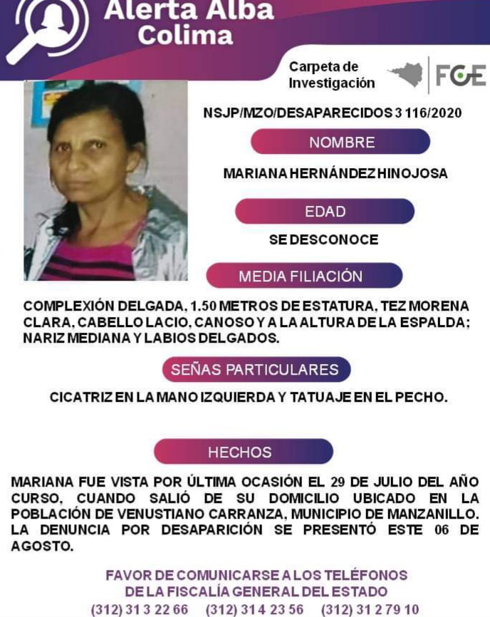 LA ÚLTIMA VEZ LA VIERON EN LA LOCALIDAD DE V. CARRANZA, EN MANZANILLO