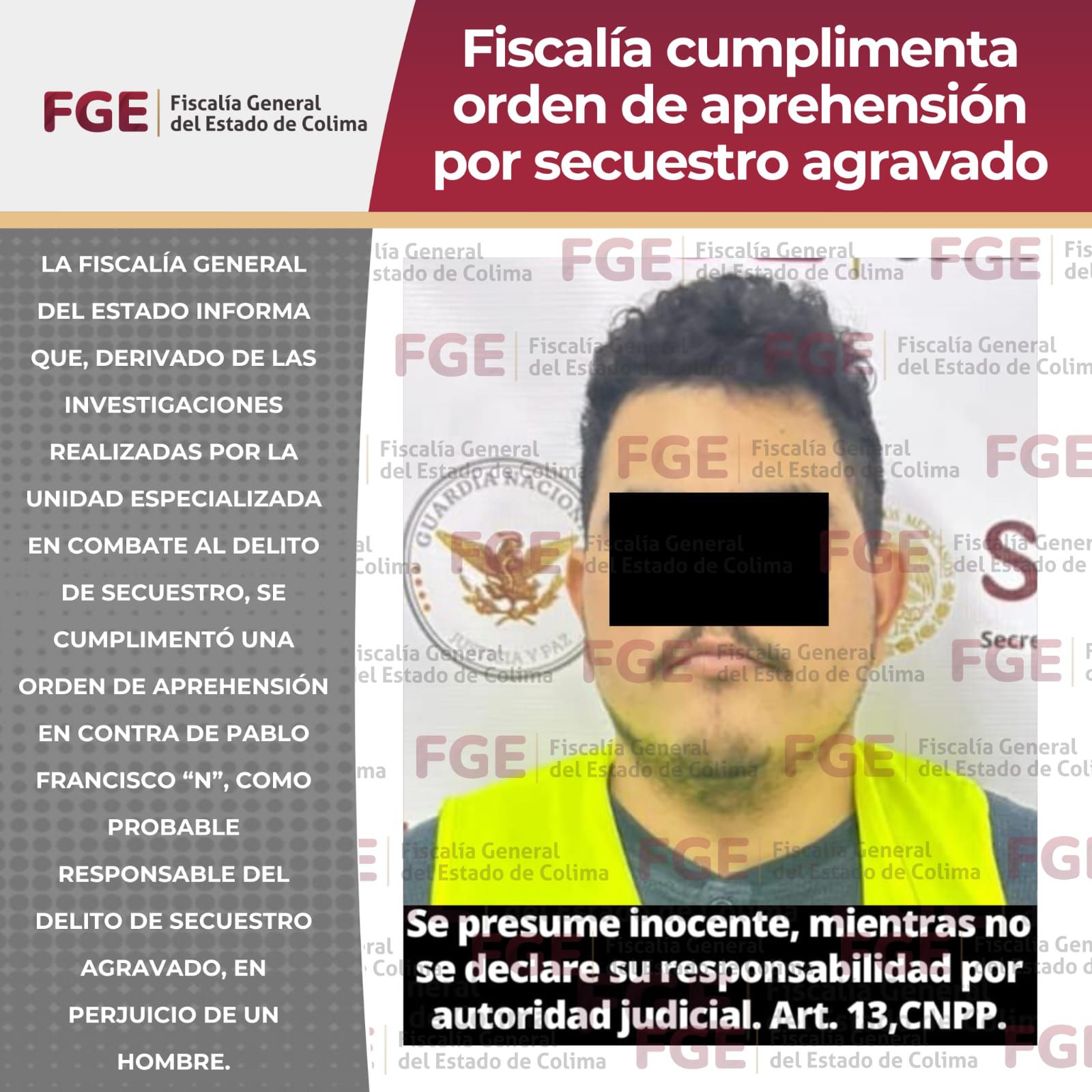 Fiscalía cumplimenta orden de aprehensión por secuestro agravado