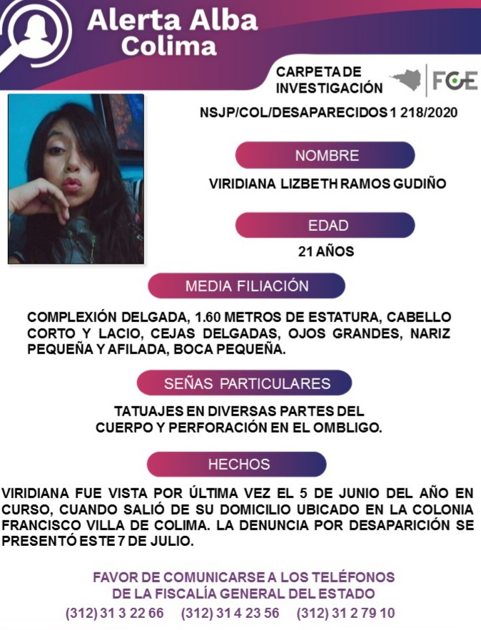 REPORTAN A VIRIDIANA, CÓMO DESAPARECIDA
