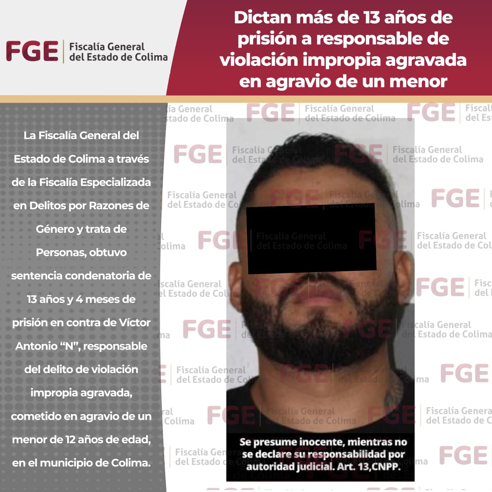 Dictan más de 13 años de prisión a responsable de violación impropia agravada en agravio de un menor