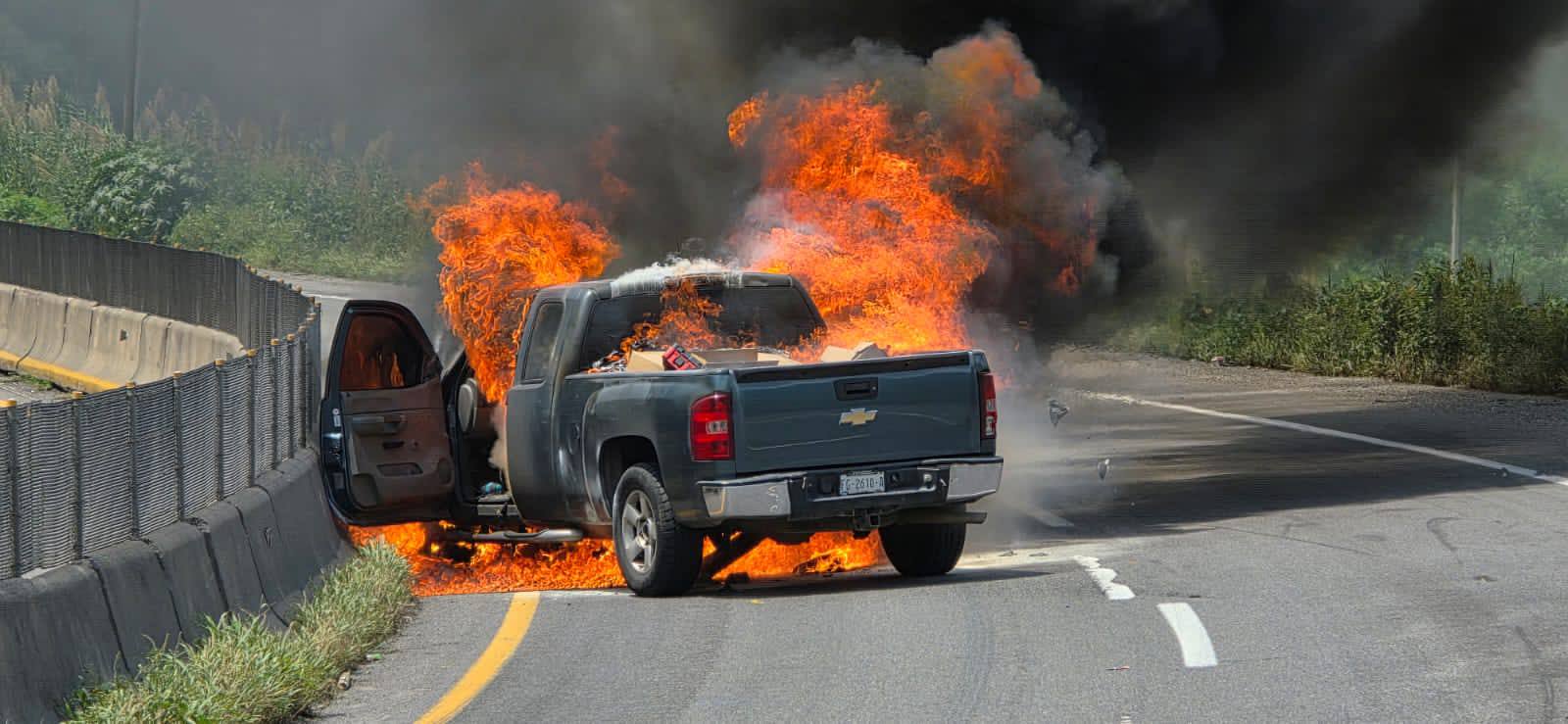 Solo daños materiales deja incendio de camioneta en La Salada