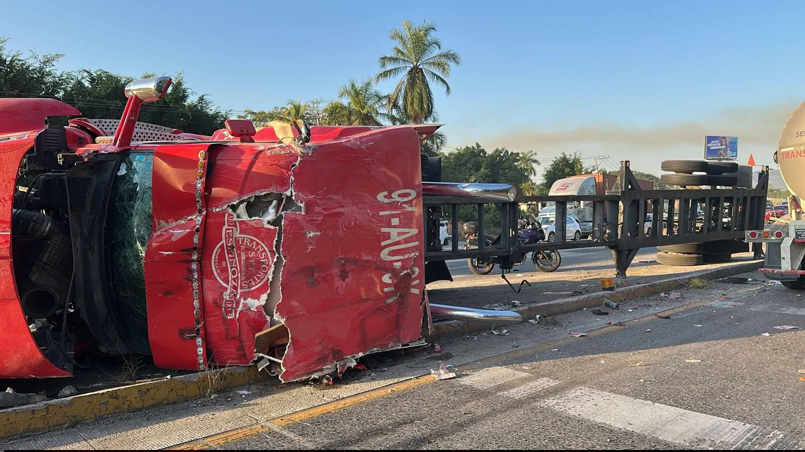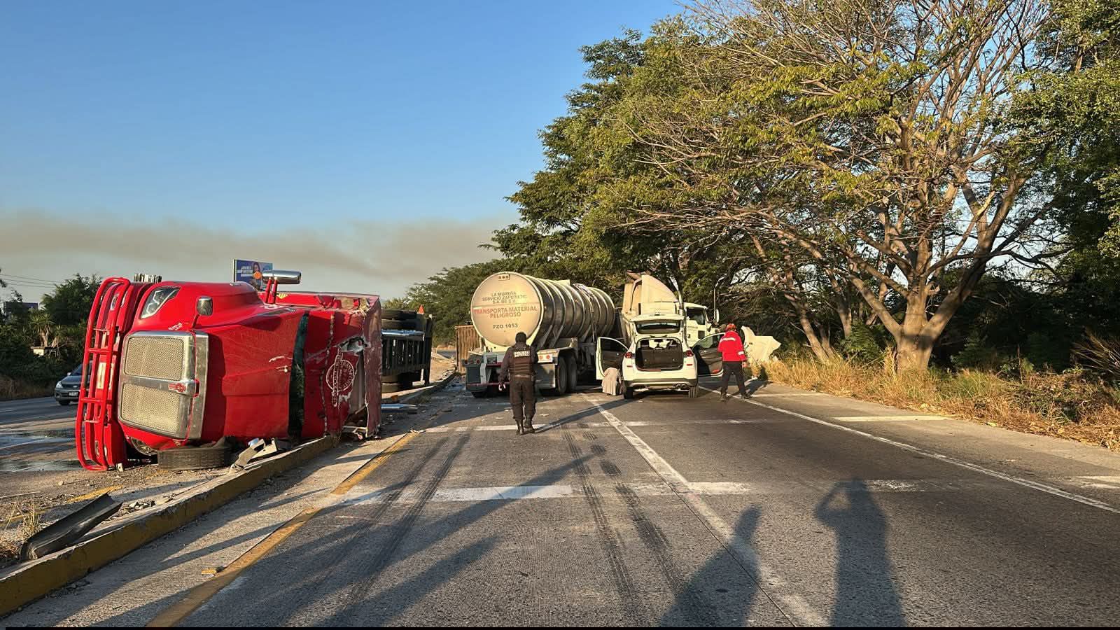 Accidente entre dos tráileres y una camioneta provoca obstrucción total de vialidad cerca del Arco Sur