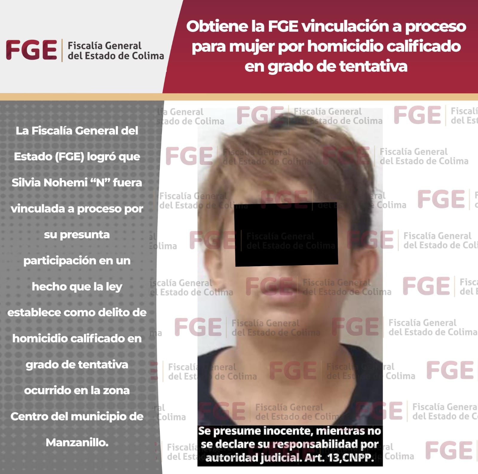 Obtiene la FGE vinculación a proceso para mujer por homicidio calificado en grado de tentativa