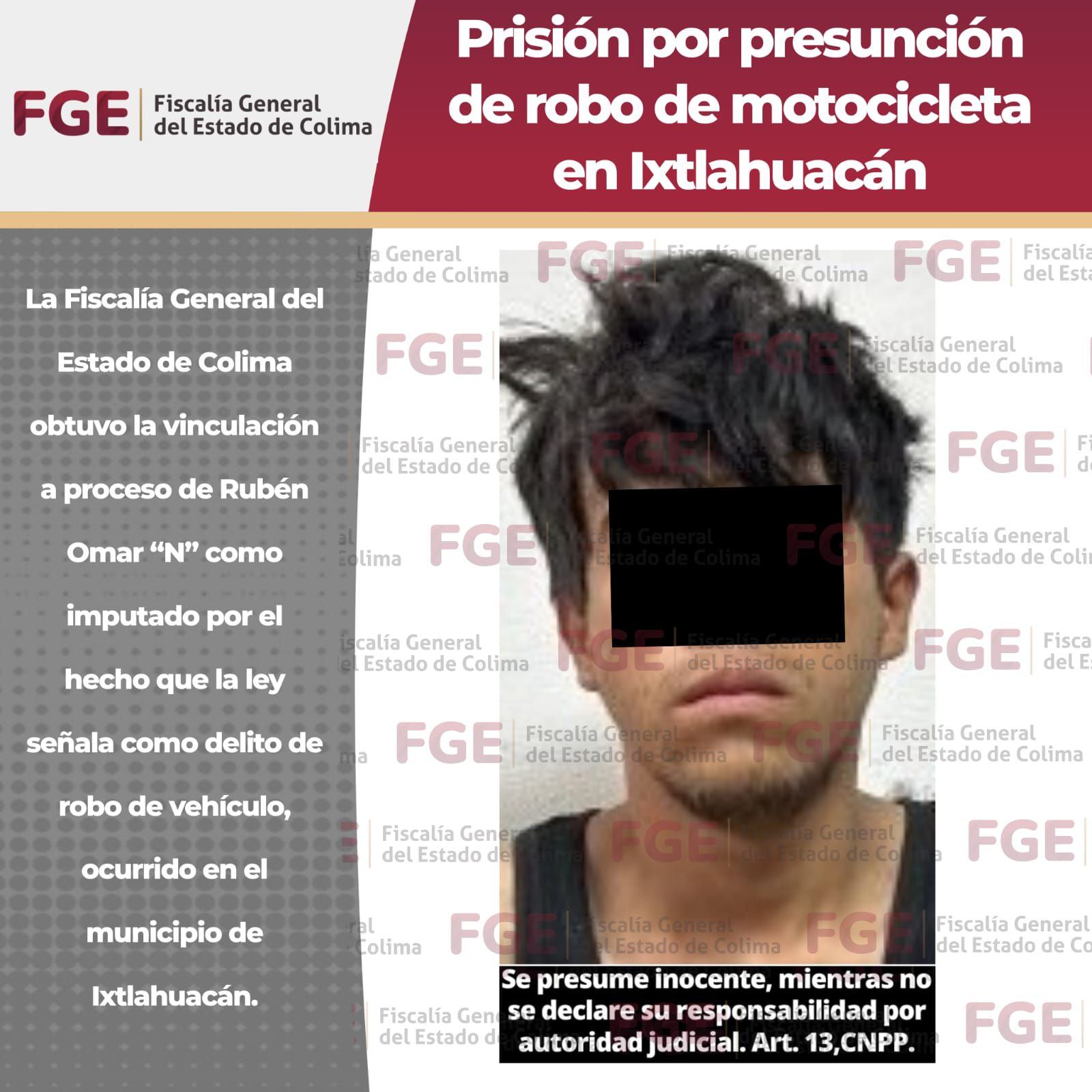 Prisión por presunción de robo de motocicleta en Ixtlahuacán