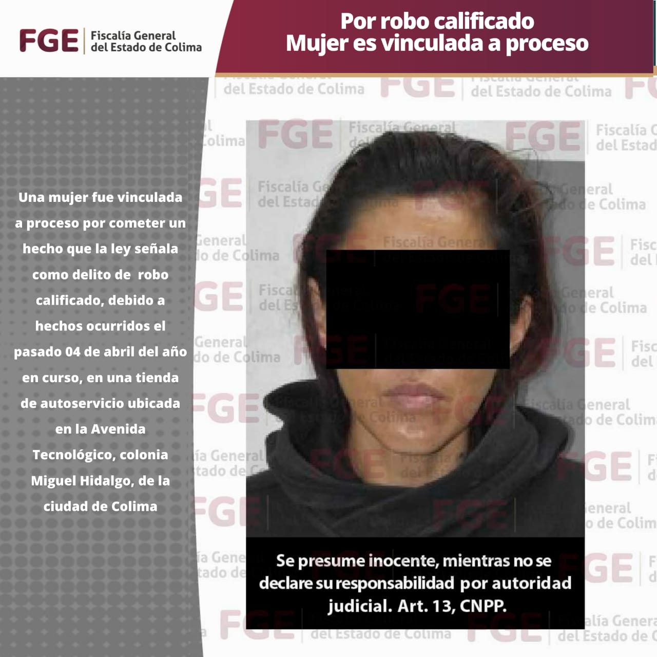 Por robo calificado Mujer es vinculada a proceso