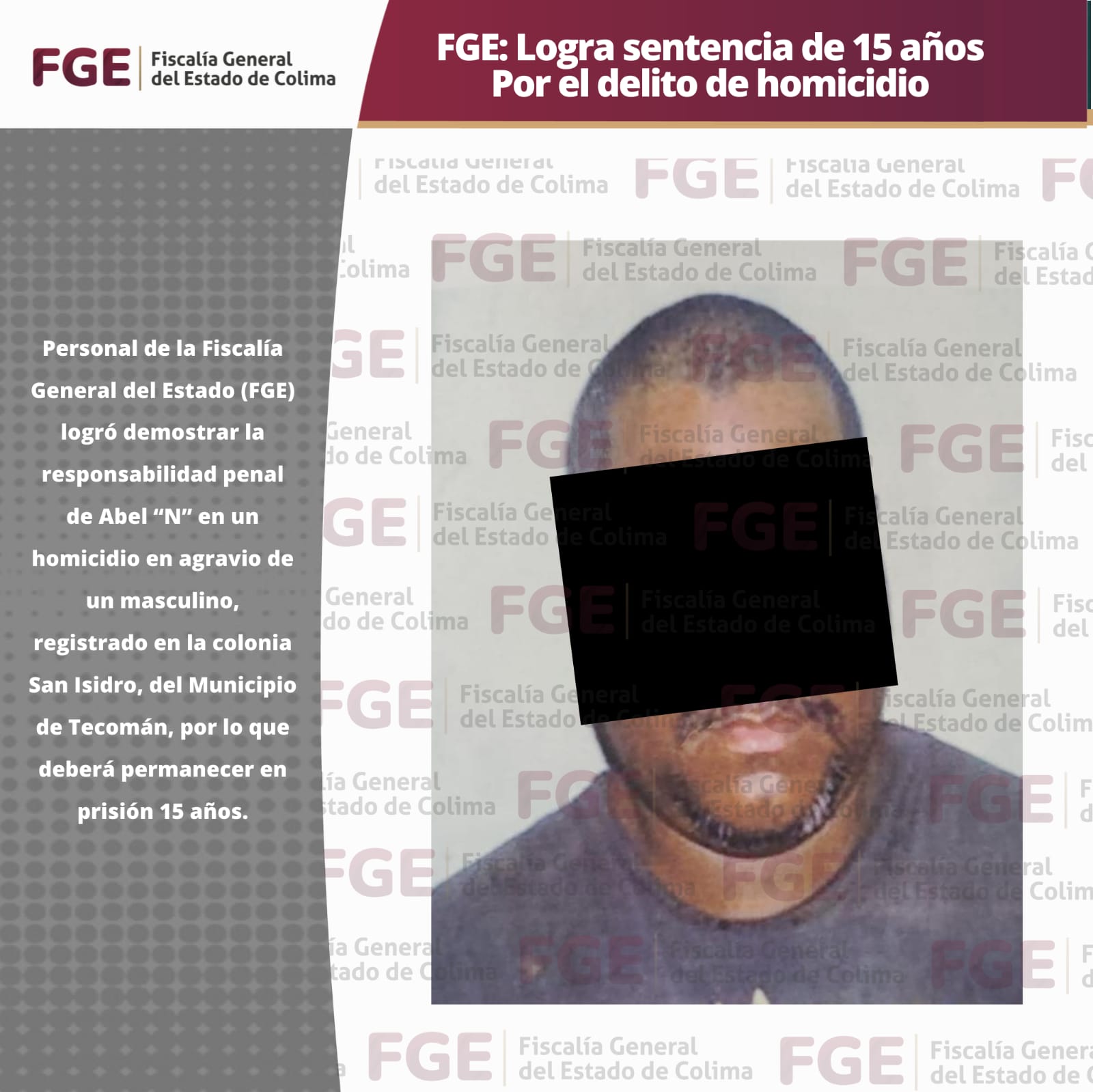 FGE: Logra sentencia de 15 años Por el delito de homicidio