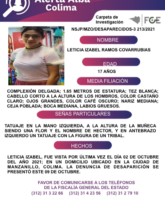 REPORTAN MENOR DE EDAD, DESAPARECIDA EN MANZANILLO