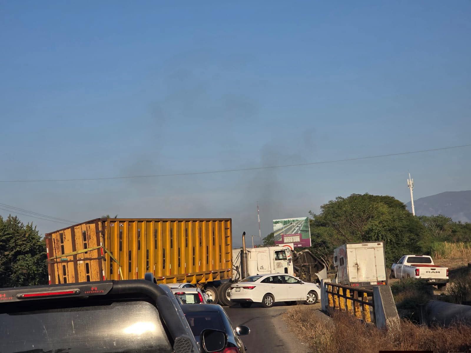 UEPC Colima: Accidente de camión de carga en el libramiento sur provoca obstrucción vial