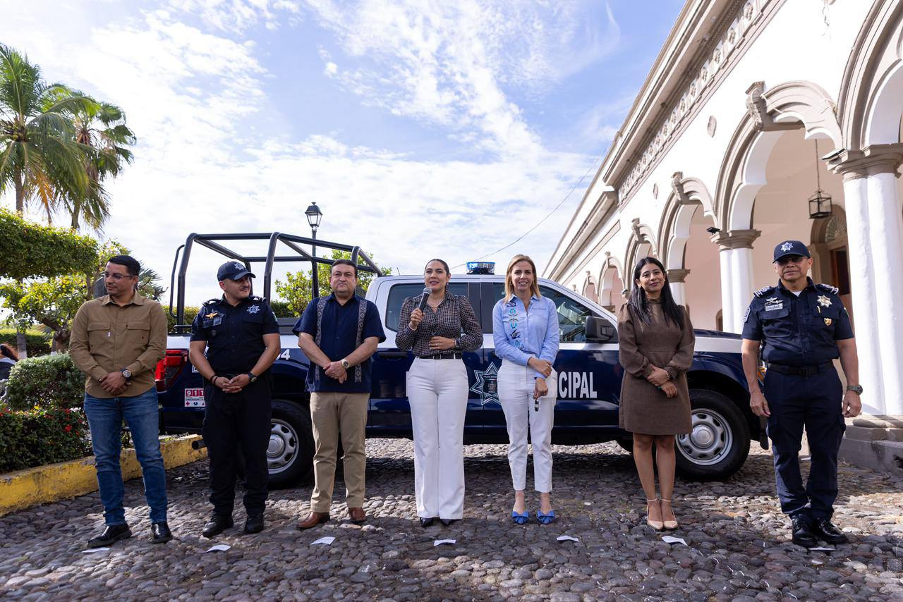 Indira Vizcaíno entrega nueva patrulla y equipo a la Policía Municipal de Comala