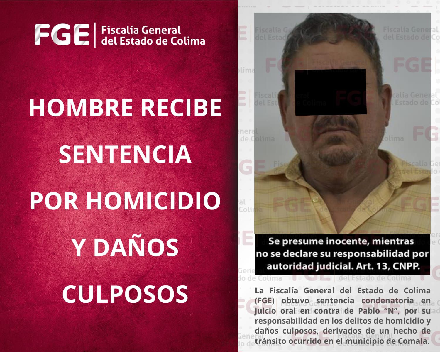 Hombre recibe sentencia por homicidio y daños culposos